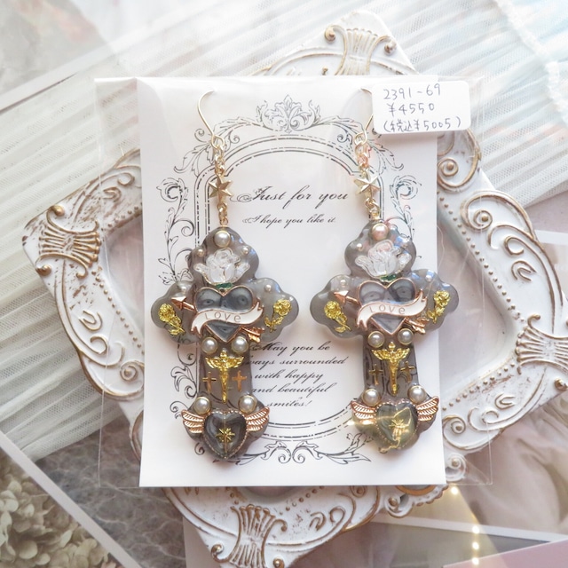 Rosa&Mimiさんコラボの十字架ネックレスとお揃いのハートコラソンを耳飾りに仕立てました!今回かぎりのラスト1点になります。 サイズ 長さ6cm