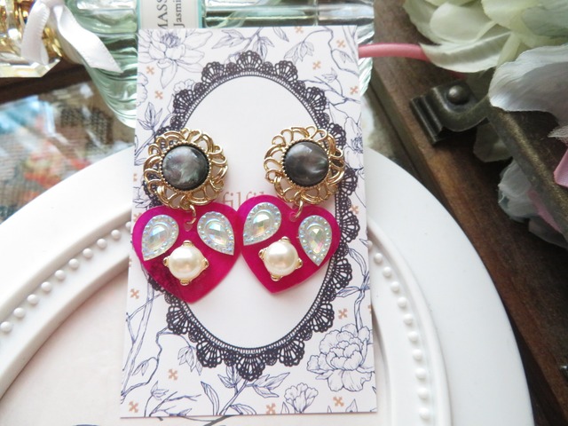 こちらは作りきりのピアスです、再販はありません。 長さ トップ1.5㎝くらい ハート2㎝ ※こちらはピアスのみの商品になります。 国内外のパーツを使用しています。金属アレルギー未対応。 金属パーツ、シェルパーツ、アクリルパーツ