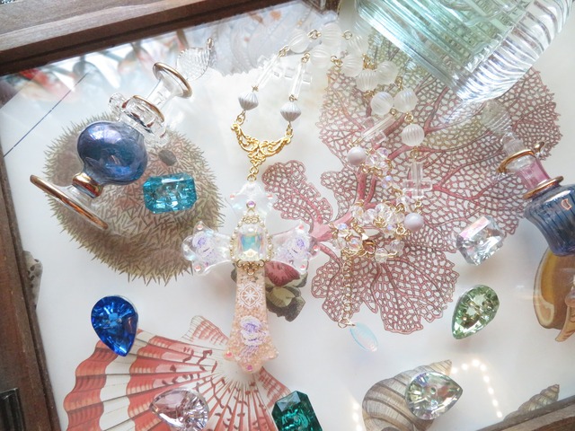 久しぶりのビーズネックレスシリーズです。今回は海をイメージして生き物や青いオリエンタルなトップなどたくさんのビーズを使って海の底の宝箱を想像しています。 どれかお気に入りのデザインがあれば嬉しいです。最近はこちらシリーズが登場回数少ないのですがもう少し増やしていけたらと思います。 ※こちらの商品はお写真トップの表裏、トルソー着用共通です。首元ビーズの配色違いになります。 サイズ40㎝くらい 金属パーツ、国内外のパーツを使用しています。金属アレルギー対応ではありません。