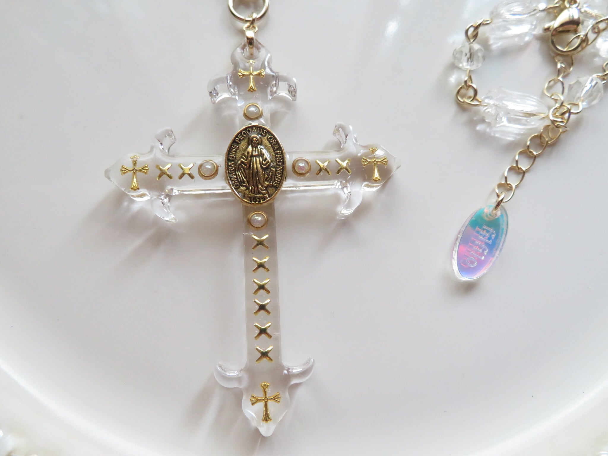 定番のクリア十字架から初だしの形の十字架です。少し小ぶりですが存在感のある高貴な感じに仕上げてみました。