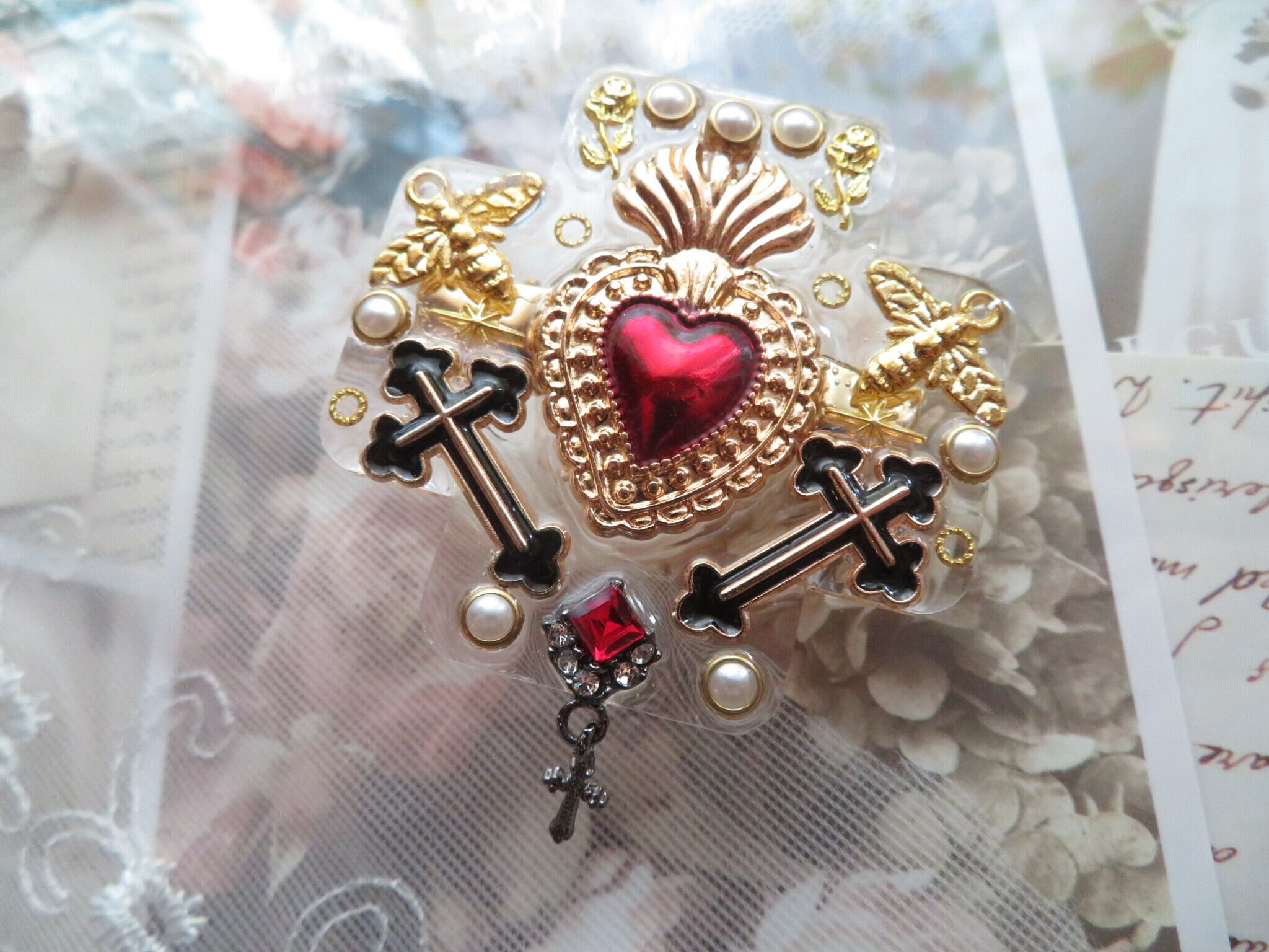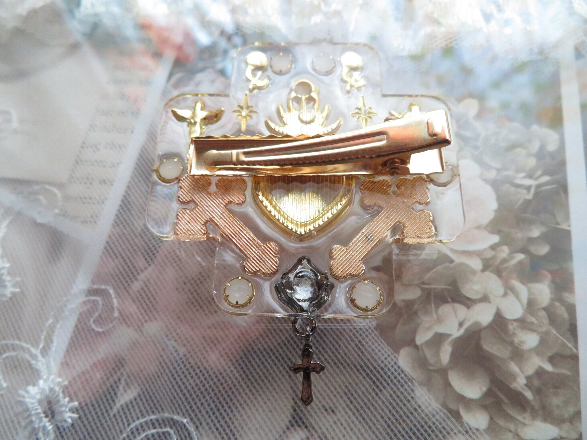 今回初登場のクリアクロスのヘアクリップです。以前同じ元の形でチョーカーを出したことがあります。(このデザインでもチョーカー絶対に可愛いですね)