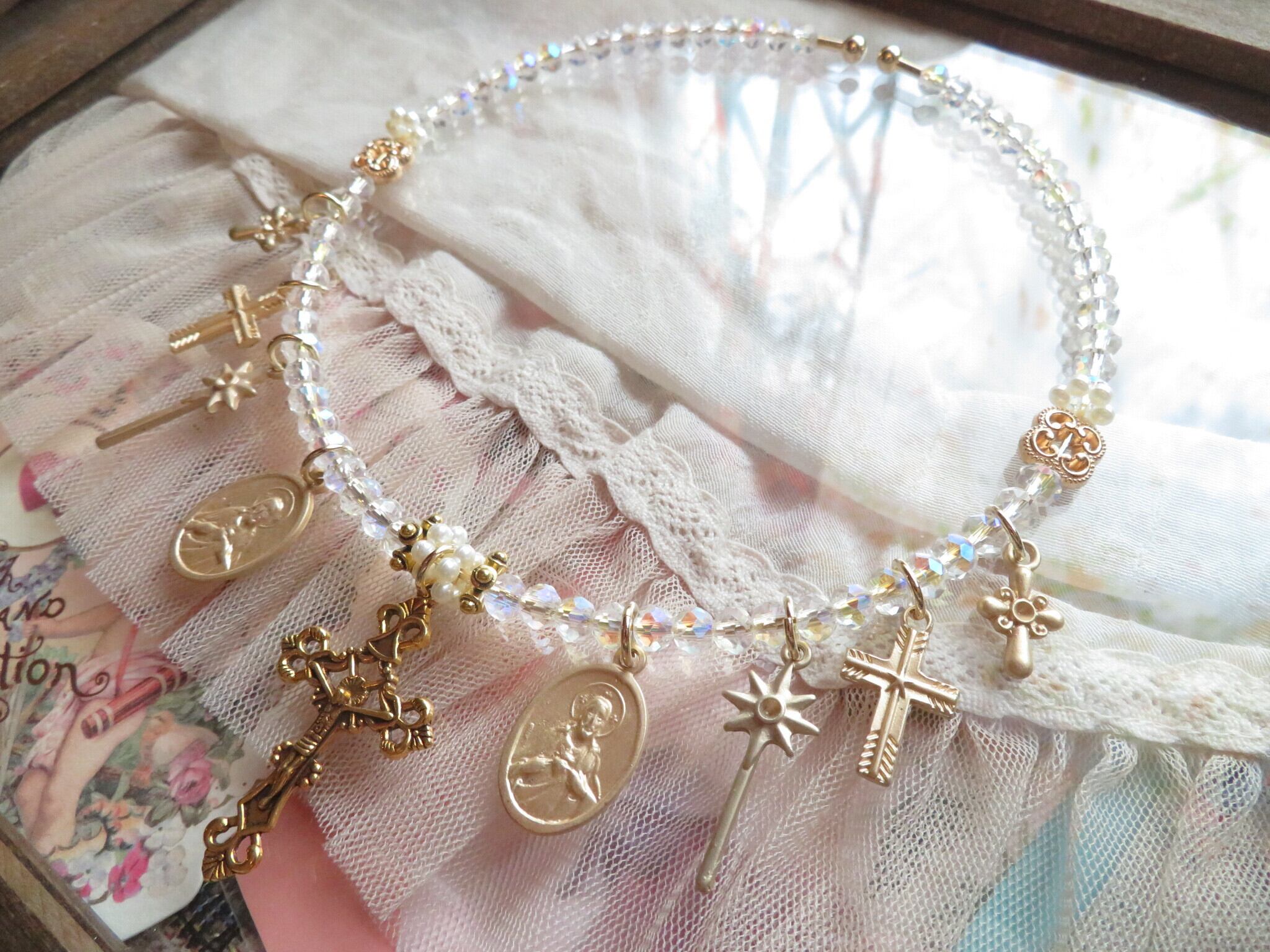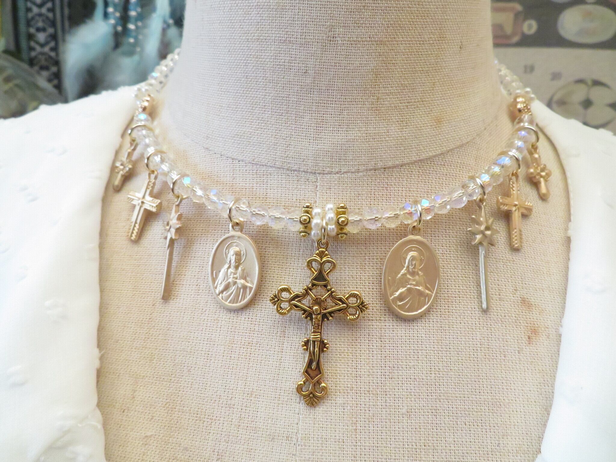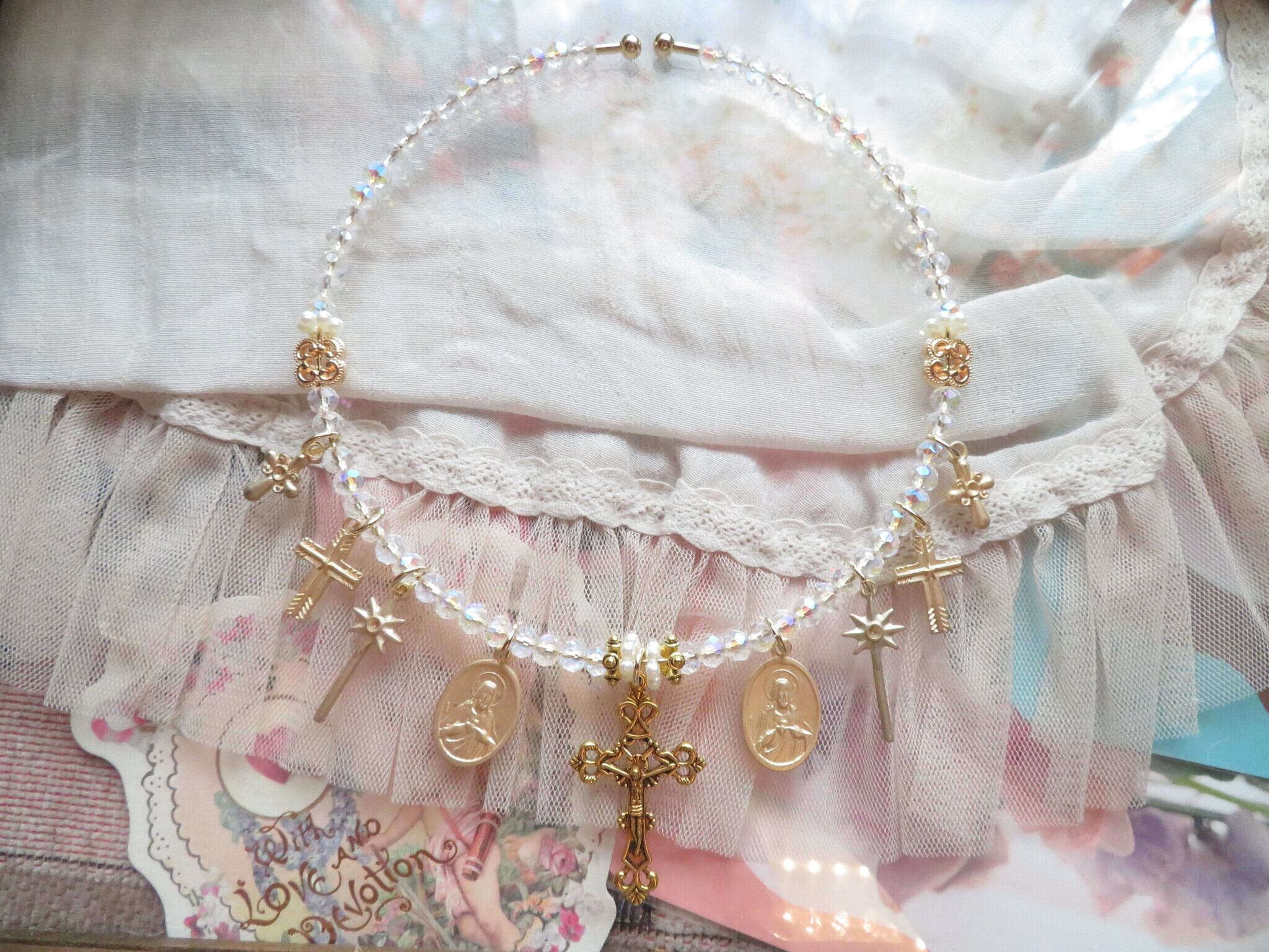 久しぶりのワイヤーチョーカーシリーズです。今回はさわやかなキラキラとしてベースのガラスビーズはすべて同じものを使用しています。クリアなのですがカットに青の偏光がほどこされておりいっそう爽やかさが増します。