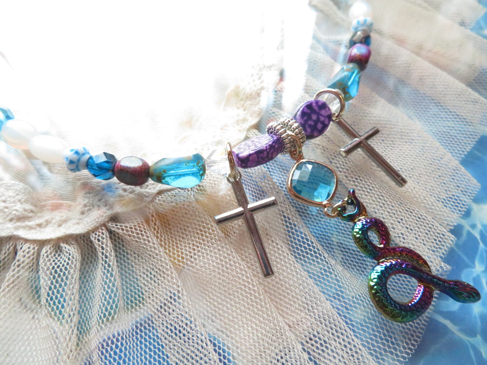 久しぶりのビーズネックレスシリーズです。今回は海をイメージして生き物や青いオリエンタルなトップなどたくさんのビーズを使って海の底の宝箱を想像しています。