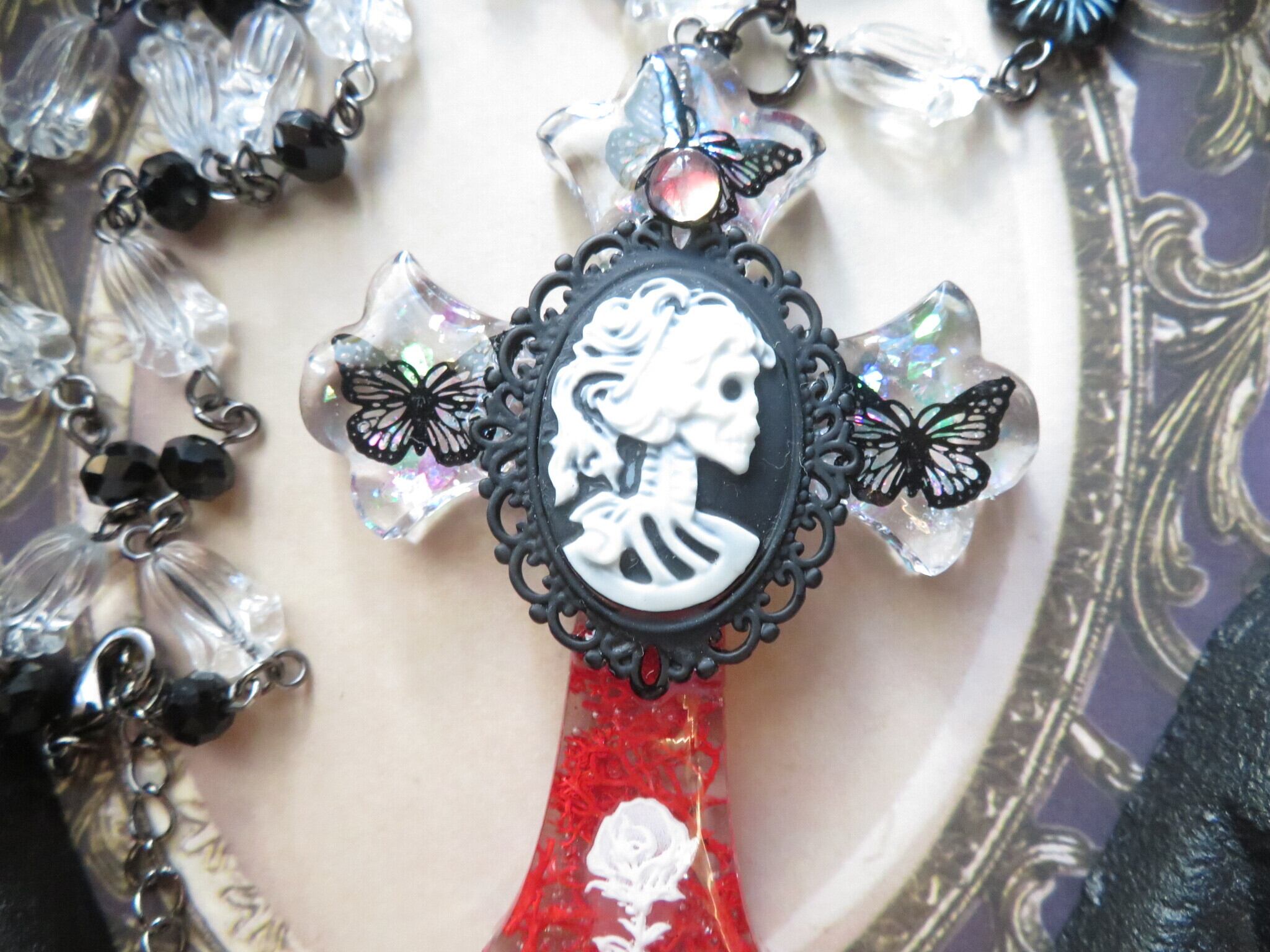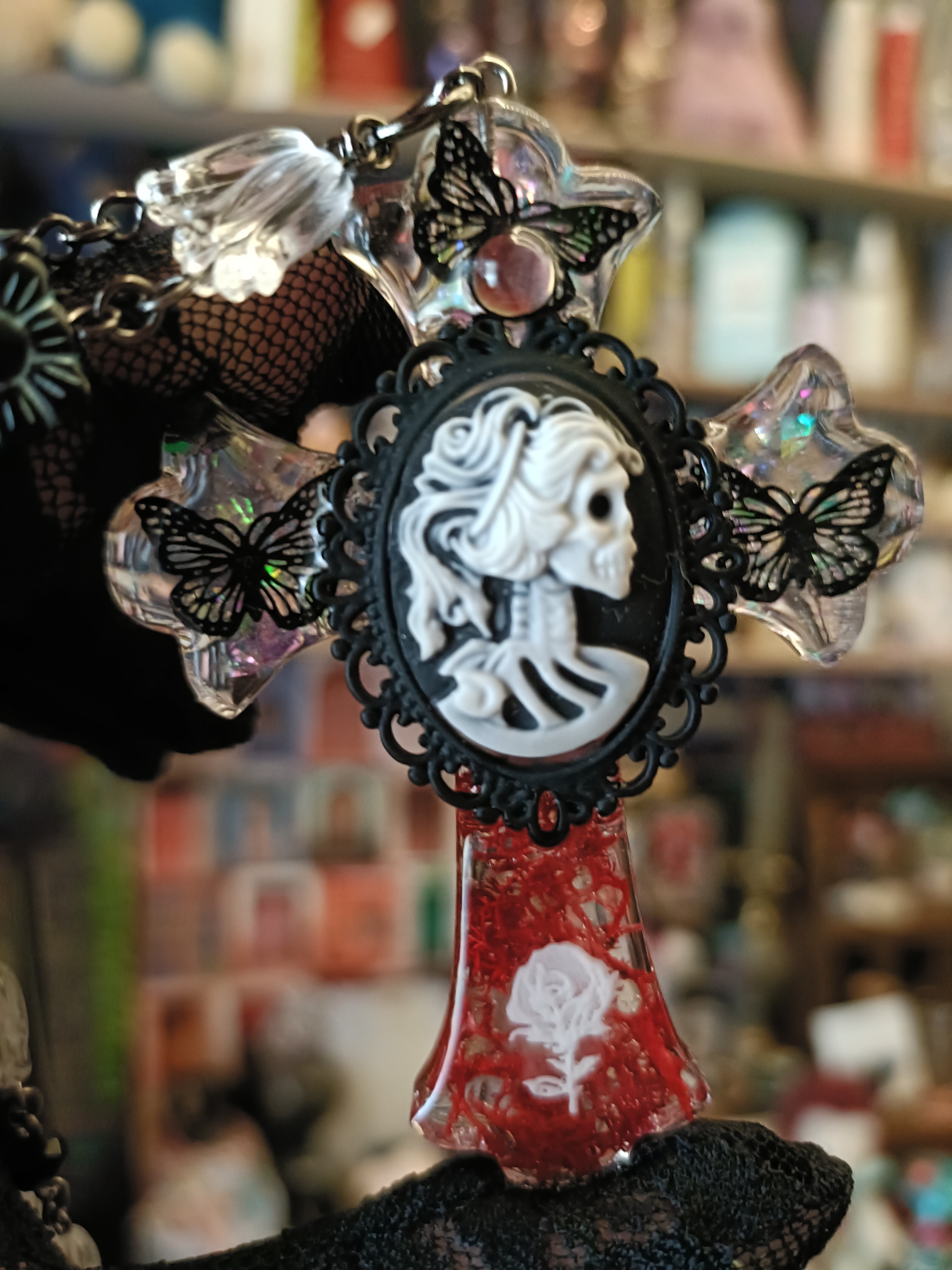 昨年の貴婦人の肖像画より再販です。貴婦人の肖像画をテーマにした洗練されたデザインが魅力です。透明感がモダンでありながら、どこかクラシックな雰囲気を演出します。十字架にはカラーモス、ラメなどが入っています。