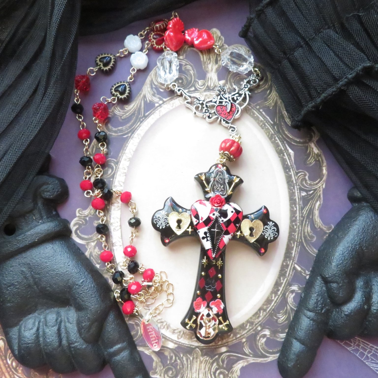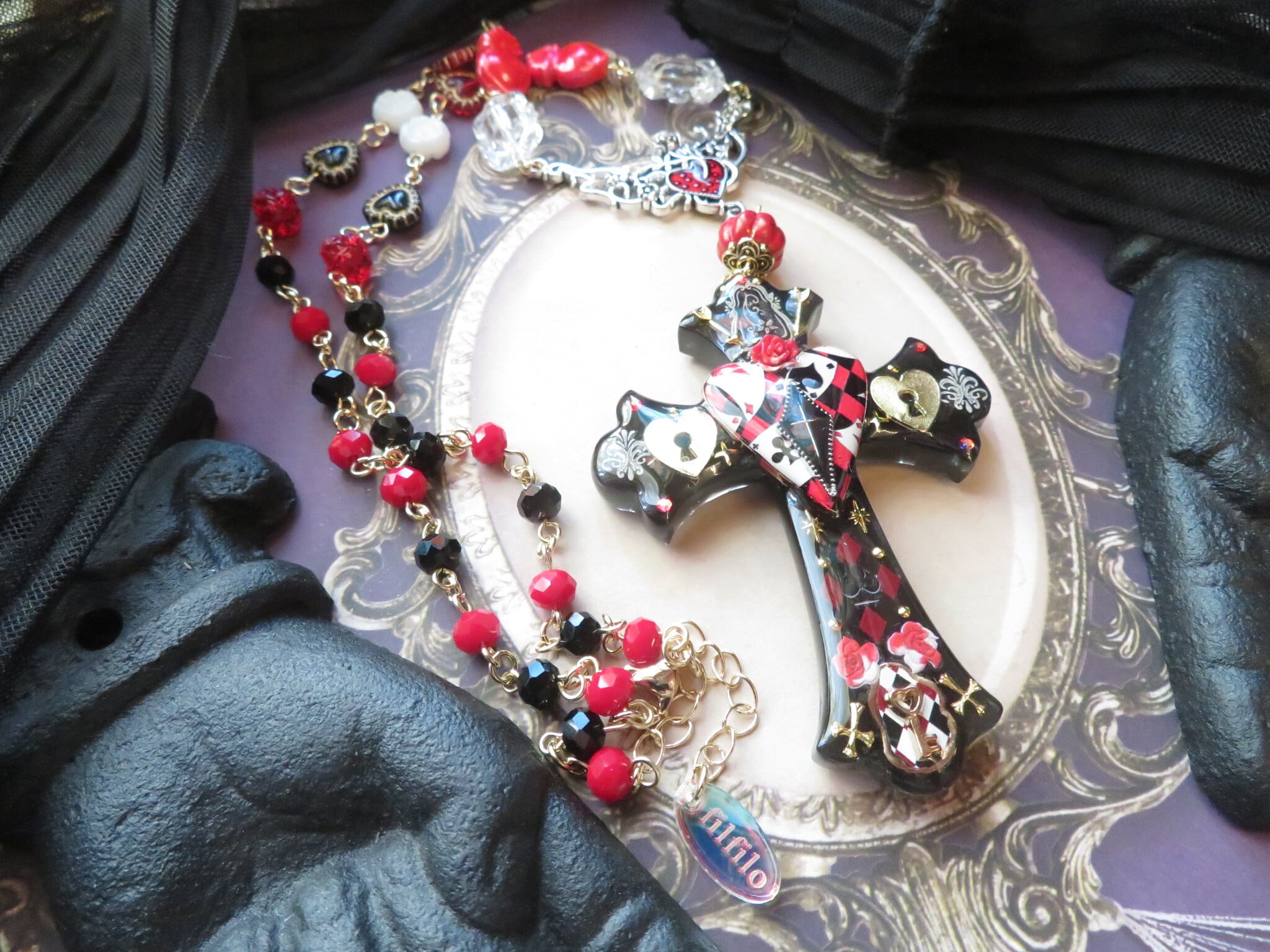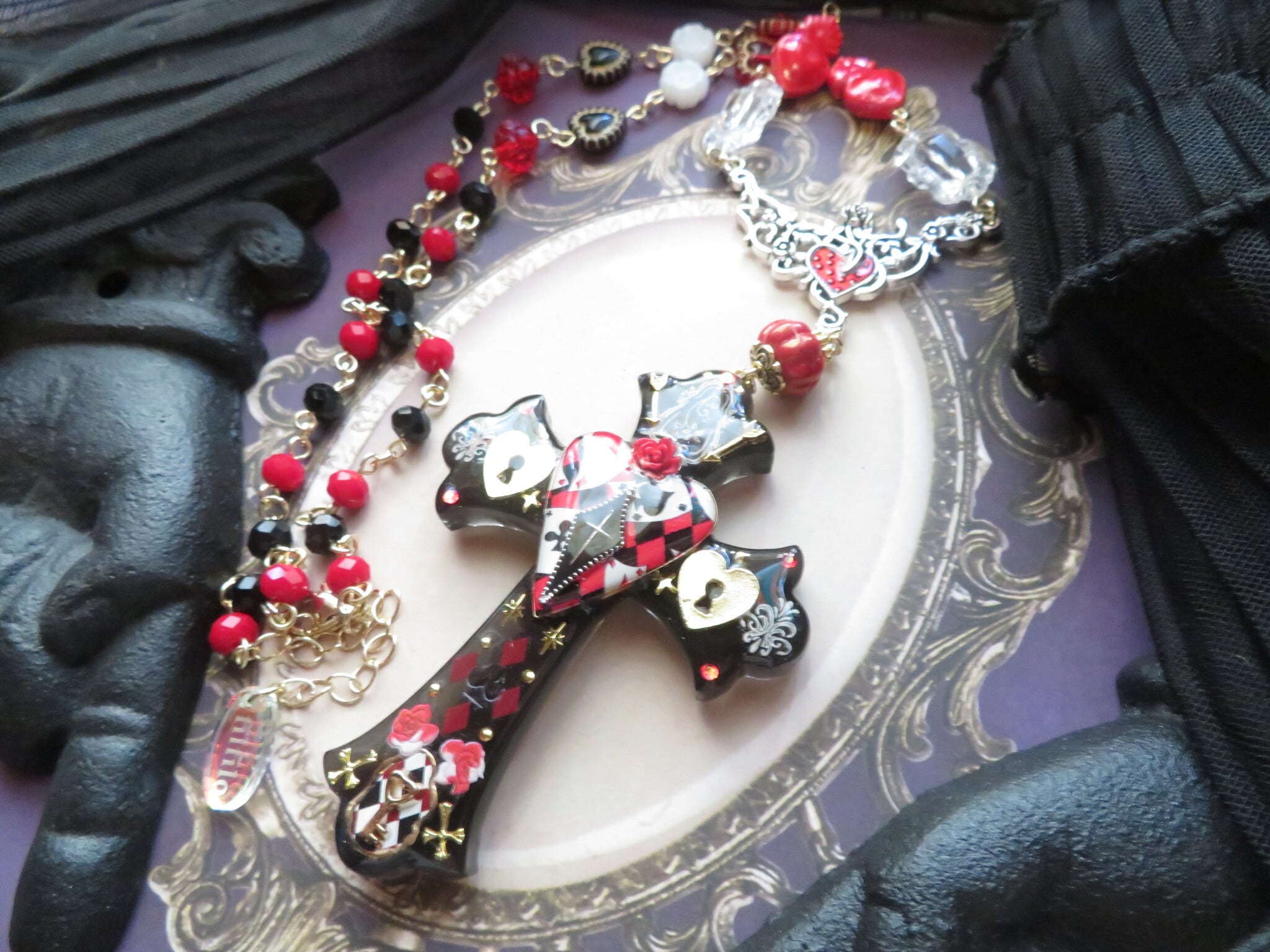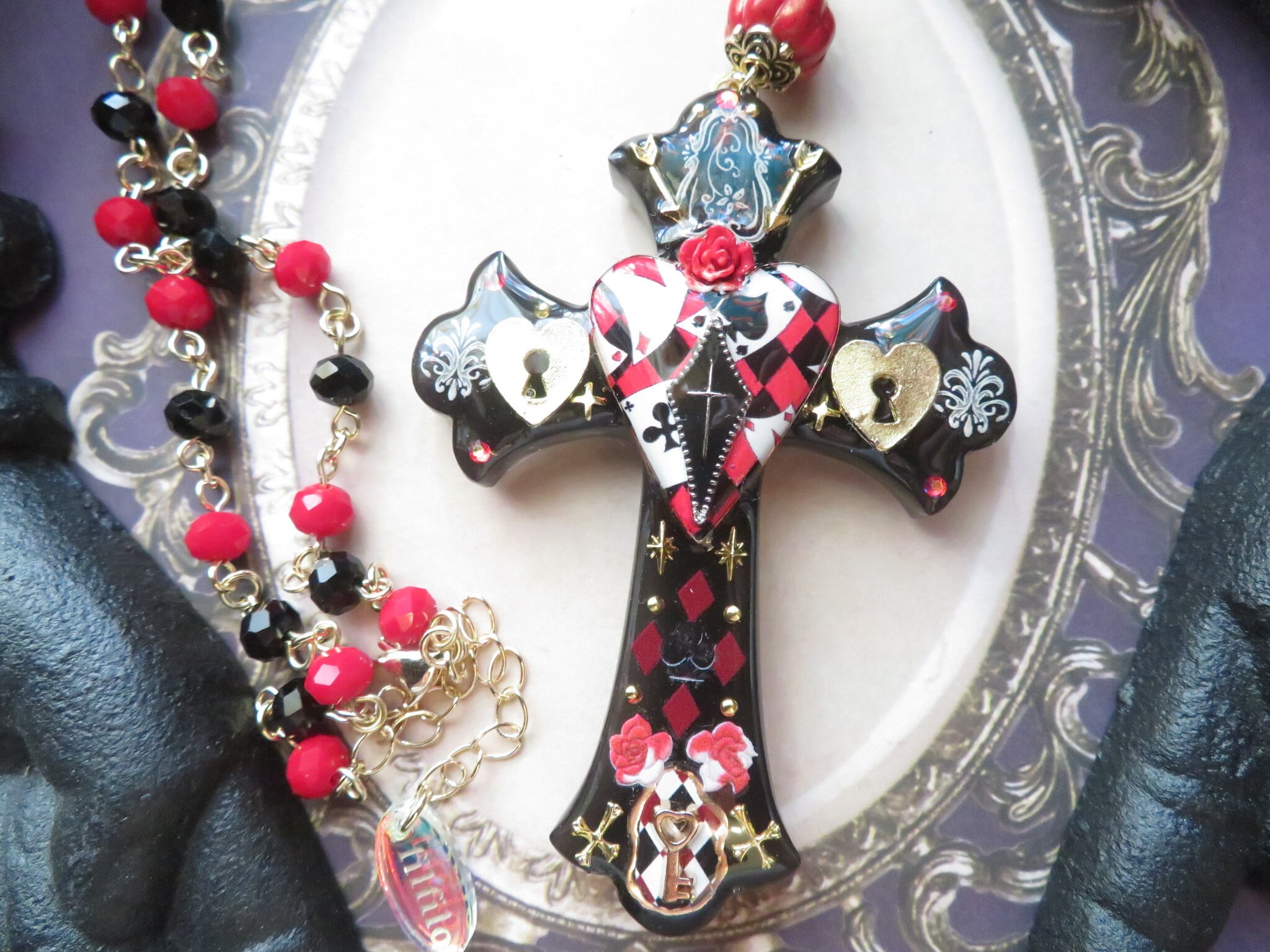 こちらはトランプモチーフの新作になります。装飾十字架トランプは、独特のデザインと華やかさが魅力の一品です。ゴシックな雰囲気を持ちながらも、トランプのモチーフが遊び心を加えています。幾何学的な美しさと神秘的な輝きが絡み合い、身に着けることで個性を引き立てます。