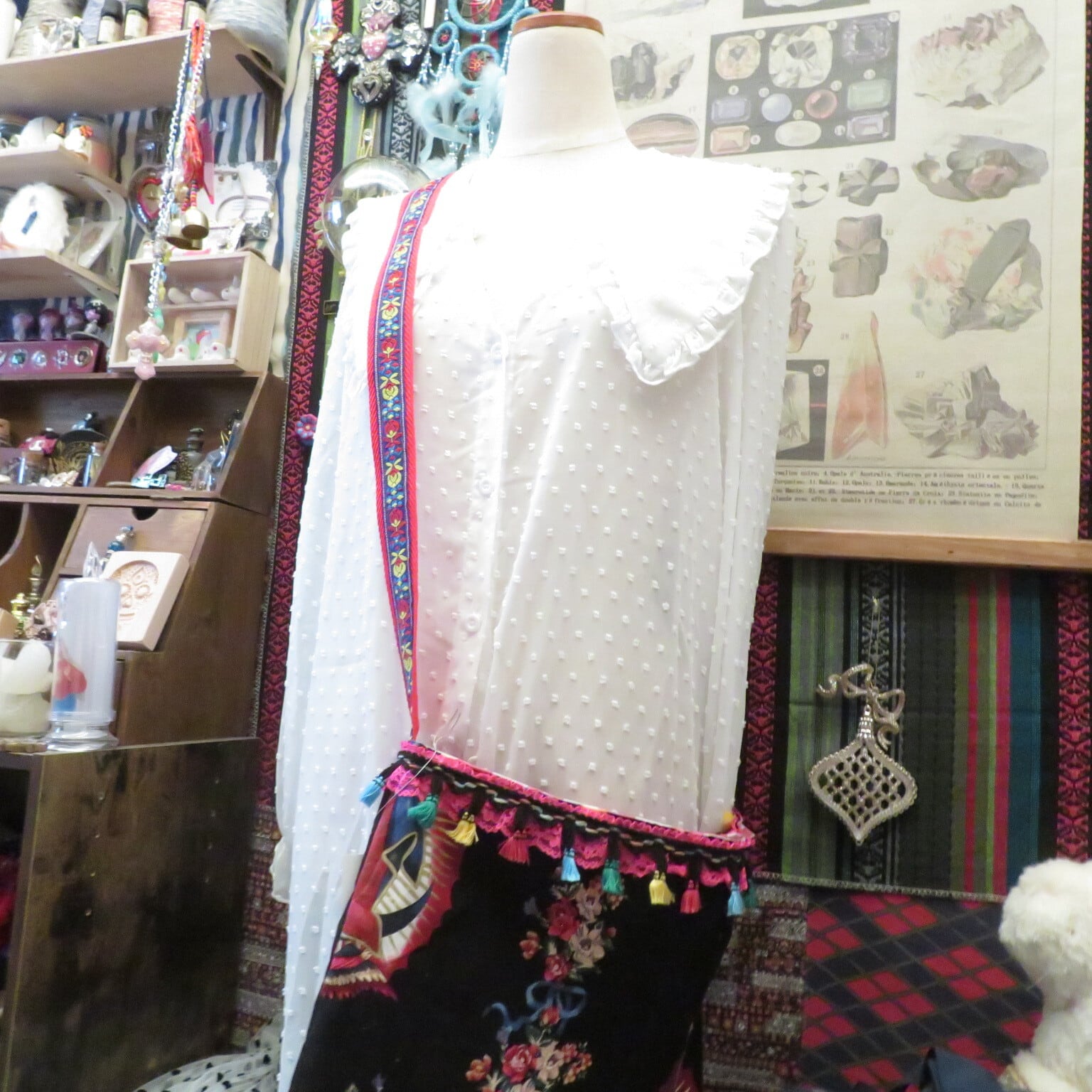 大きいスナップボタンもつけました。フリンジのりぼんなどがとても派手可愛いです!
