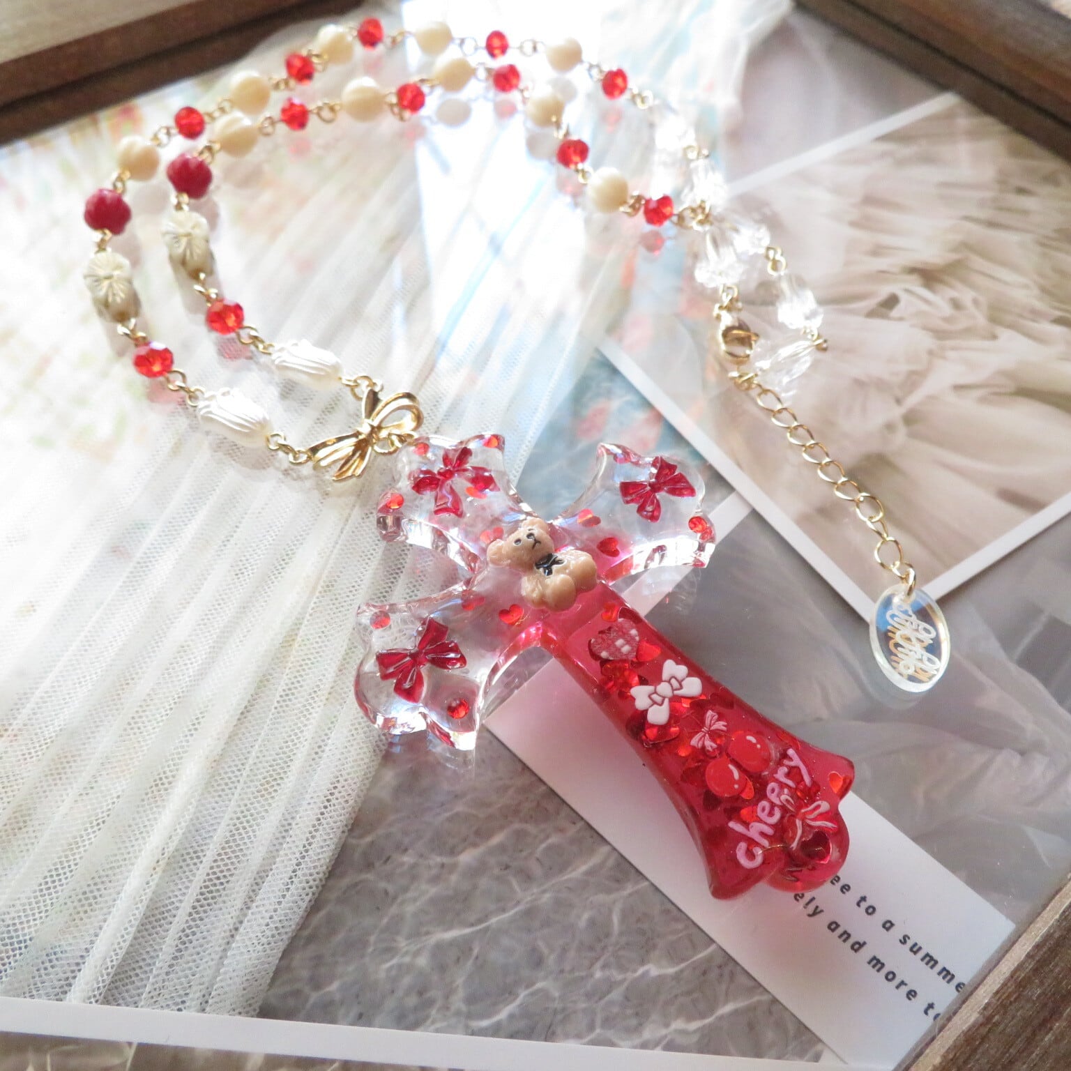 今年3回目の登場のハートホロシリーズです。今回はチェーンがシンプルですがクリアに赤というのはいつ着けても可愛らしいですよね。今年はこちらたくさん作りましたので一旦終了となります。