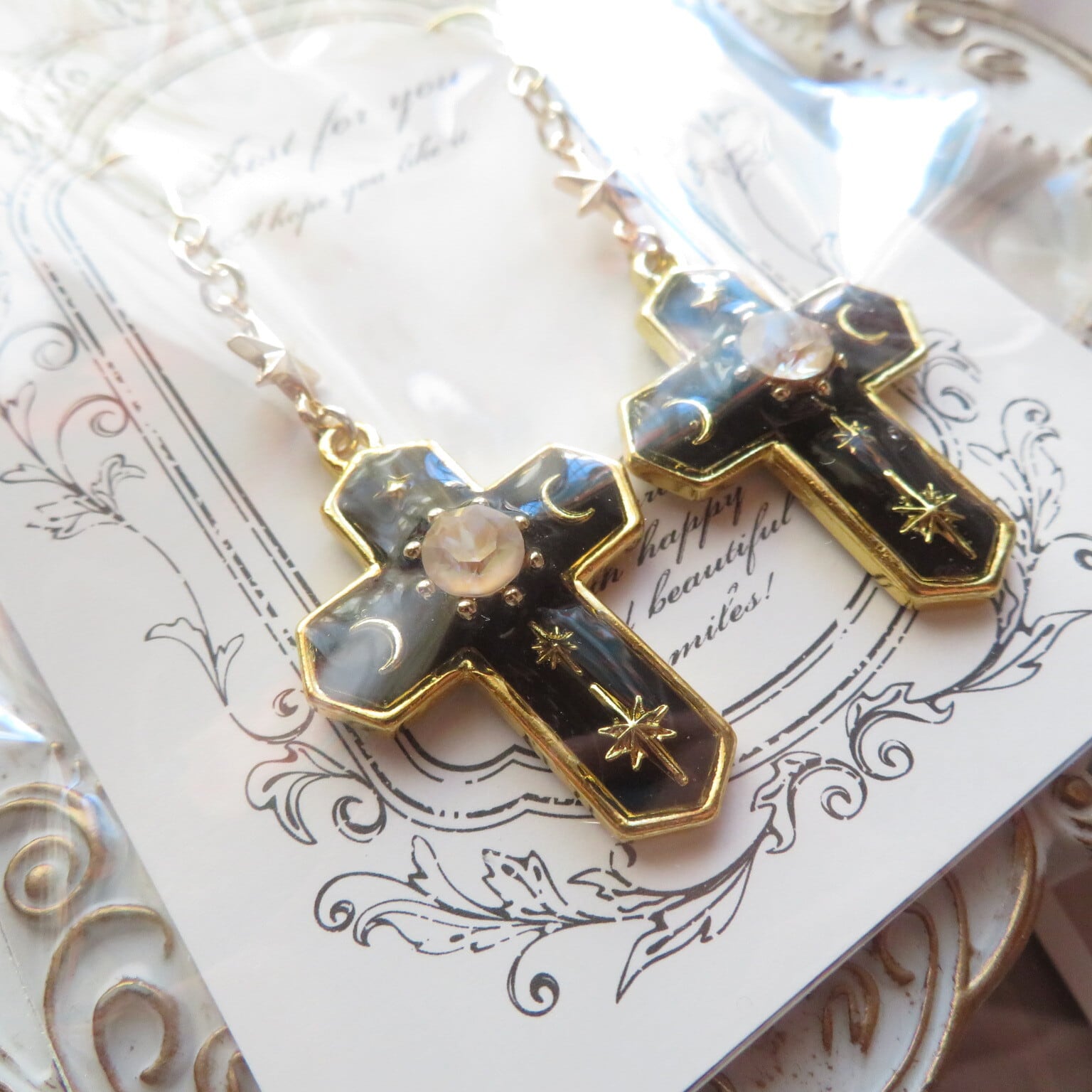 再登場です☆真ん中のきらきらのクリスタルがポイントのシンプルに使えるクロスと星モチーフのピアスです。定番になりつつあるシリーズです!