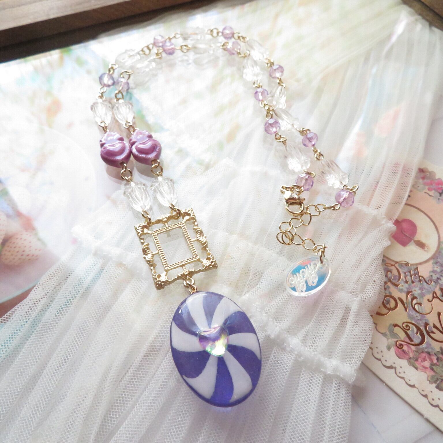 2023年登場のキャンディーネックレスからの新作です、今回は赤以外のカラーも出ましたのでご覧になっていただけたらと思います!今回のバージョンはチェーン部分のお花ビーズをパールカラーからクリアカラーへと変更してあります、キャンディー中心のハートカラーもきらきらとパールカラータイプがございます。