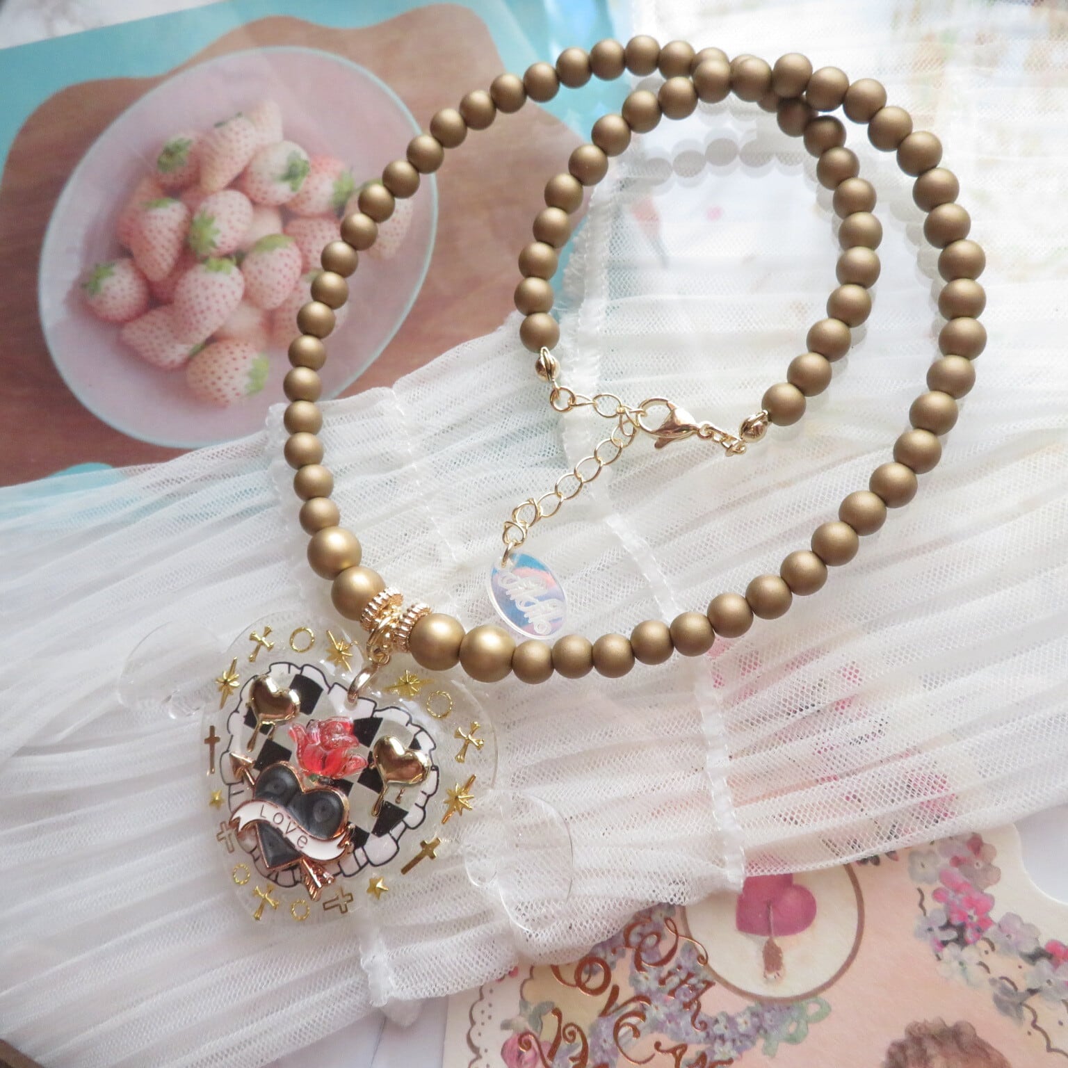 こちらは新作のハートネックレスです、2月はハート強化月間としてハートのお品物をたくさん制作しました。再販は難しいかもしれませんのでお気に入りがありましたらチェックしてください☆トップが可愛いのでチェーンはあえて控えめにしました。
