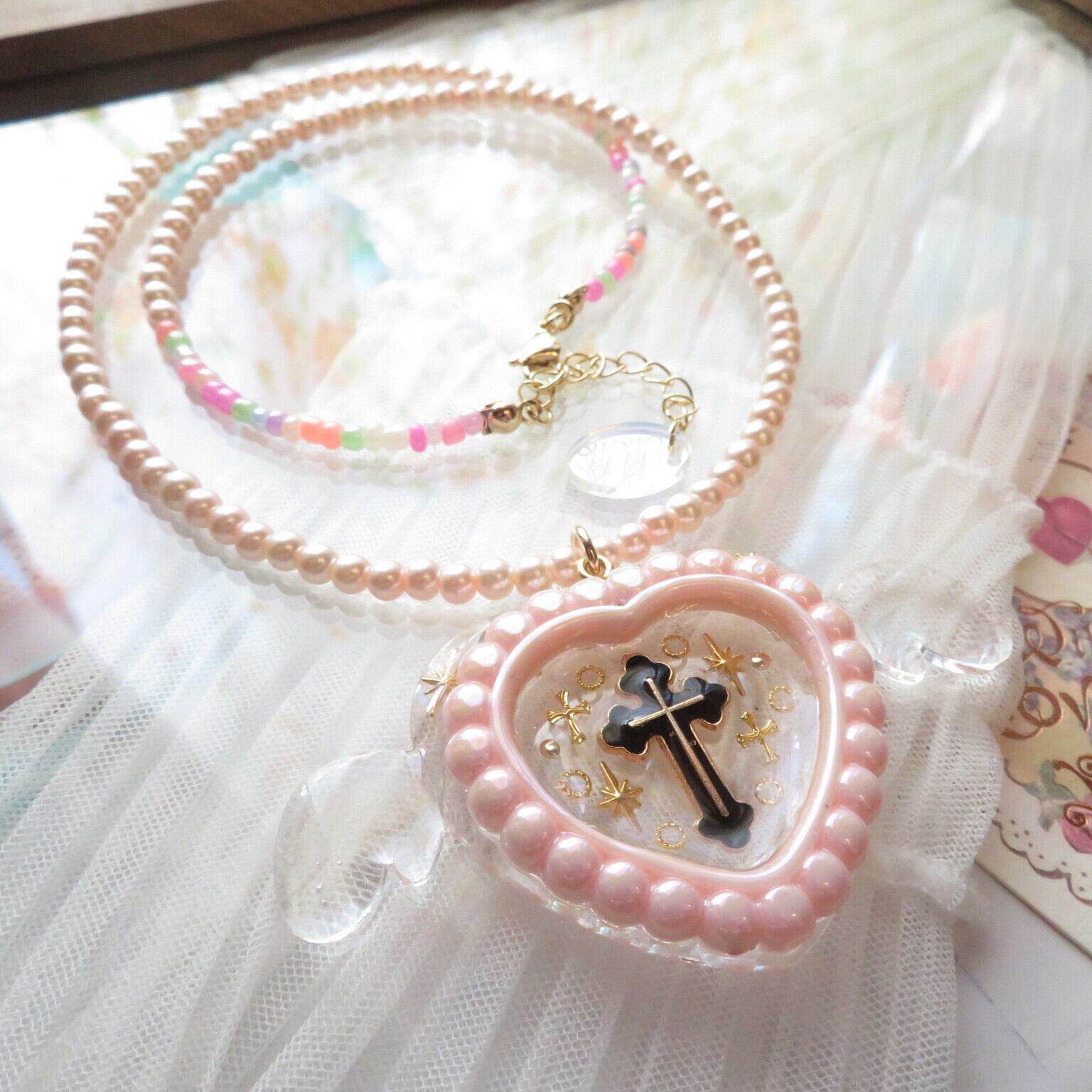 こちらは新作のハートネックレスです、2月はハート強化月間としてハートのお品物をたくさん制作しました。再販は難しいかもしれませんのでお気に入りがありましたらチェックしてください☆トップが可愛いのでチェーンはあえて控えめにしました。