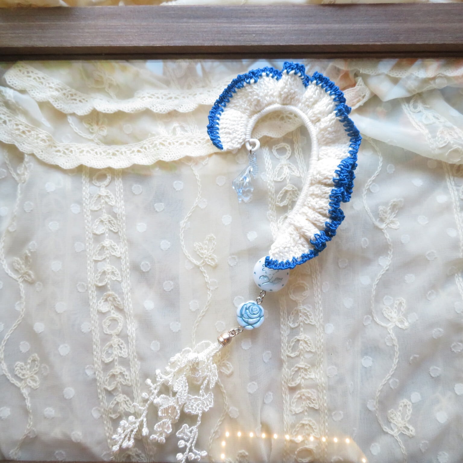 クロッシェの編みイヤーフックを作りました。ピアスもイヤリングもするのが苦手な方にもつかってもらえたらと思います。