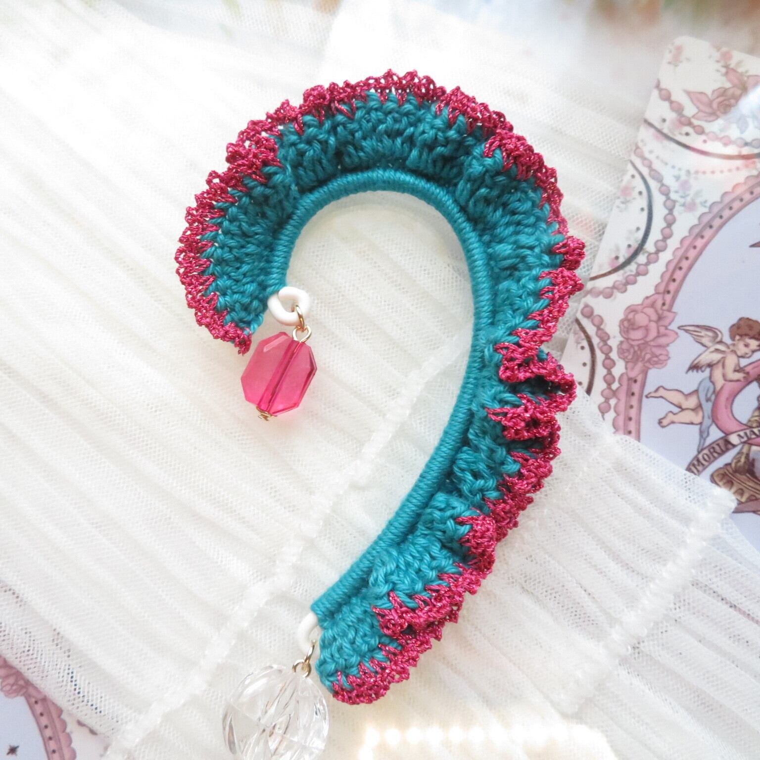 クロッシェの編みイヤーフックを作りました。ピアスもイヤリングもするのが苦手な方にもつかってもらえたらと思います。