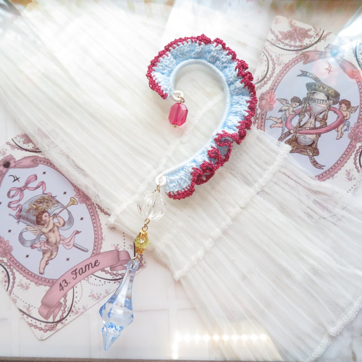 クロッシェの編みイヤーフックを作りました。ピアスもイヤリングもするのが苦手な方にもつかってもらえたらと思います。
