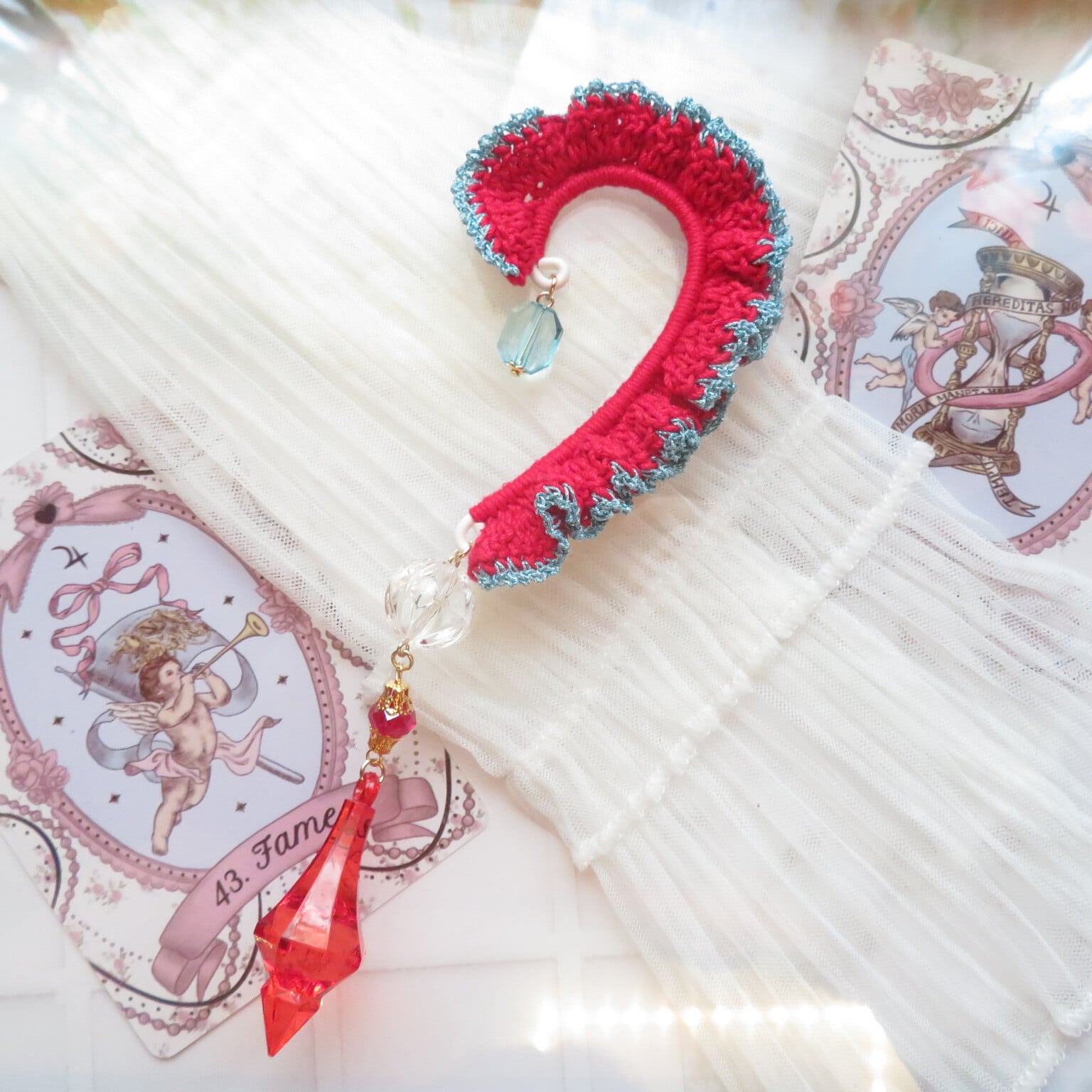 クロッシェの編みイヤーフックを作りました。ピアスもイヤリングもするのが苦手な方にもつかってもらえたらと思います。