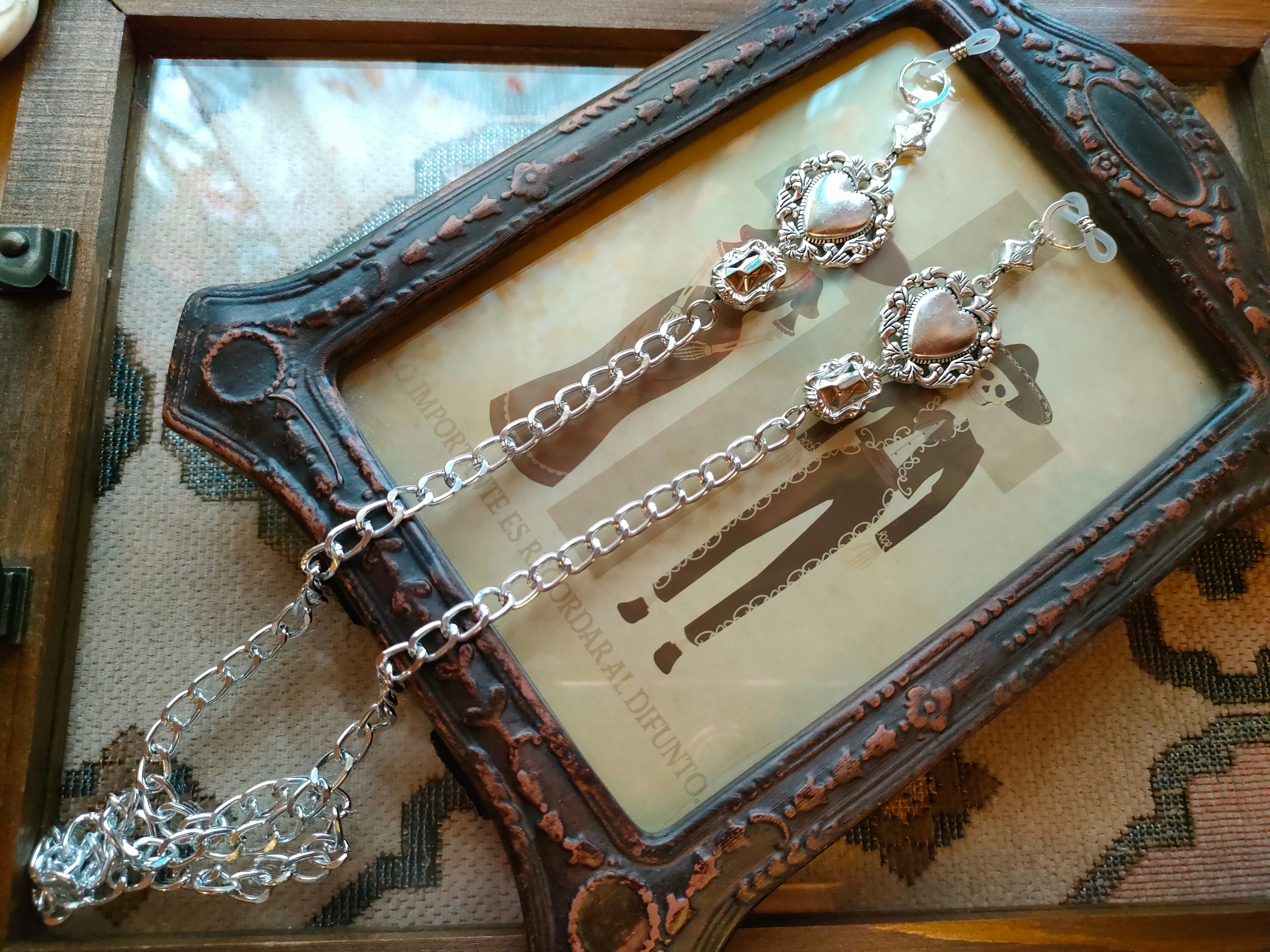 すべてシルバーカラーのシンプルで使いやすいデザインの眼鏡チェーンです。