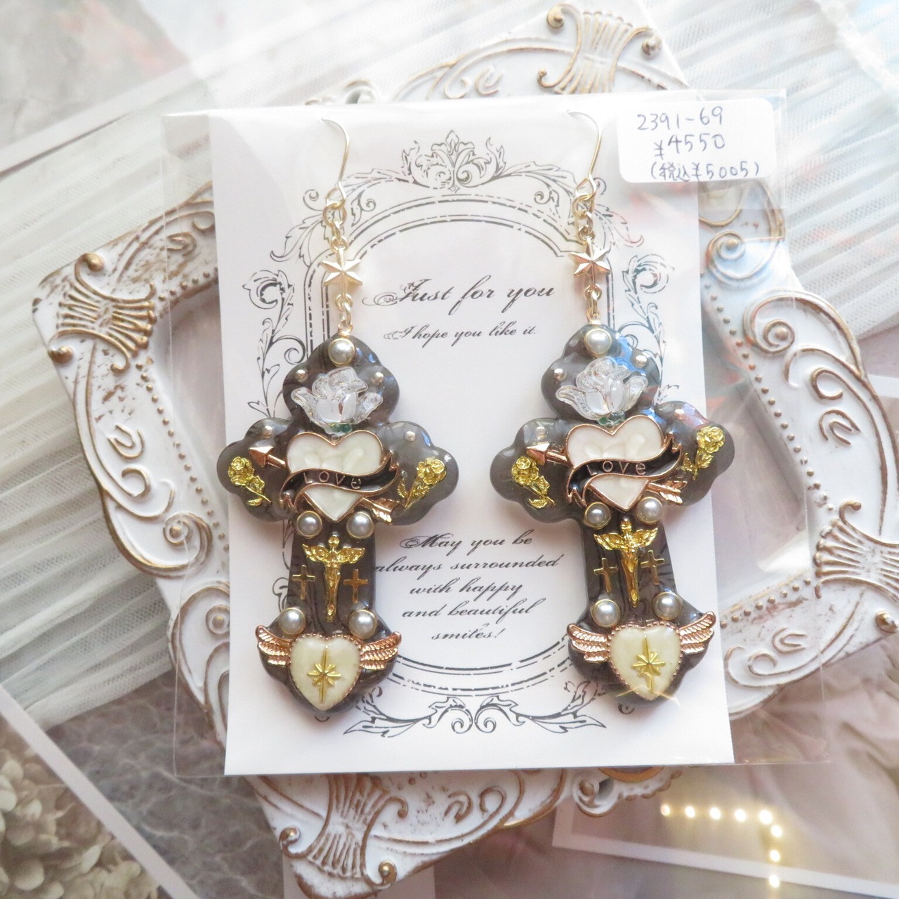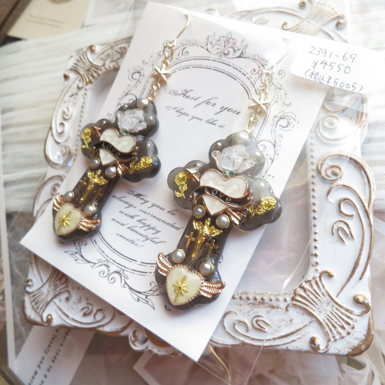オリジナルレジンクロス耳飾り