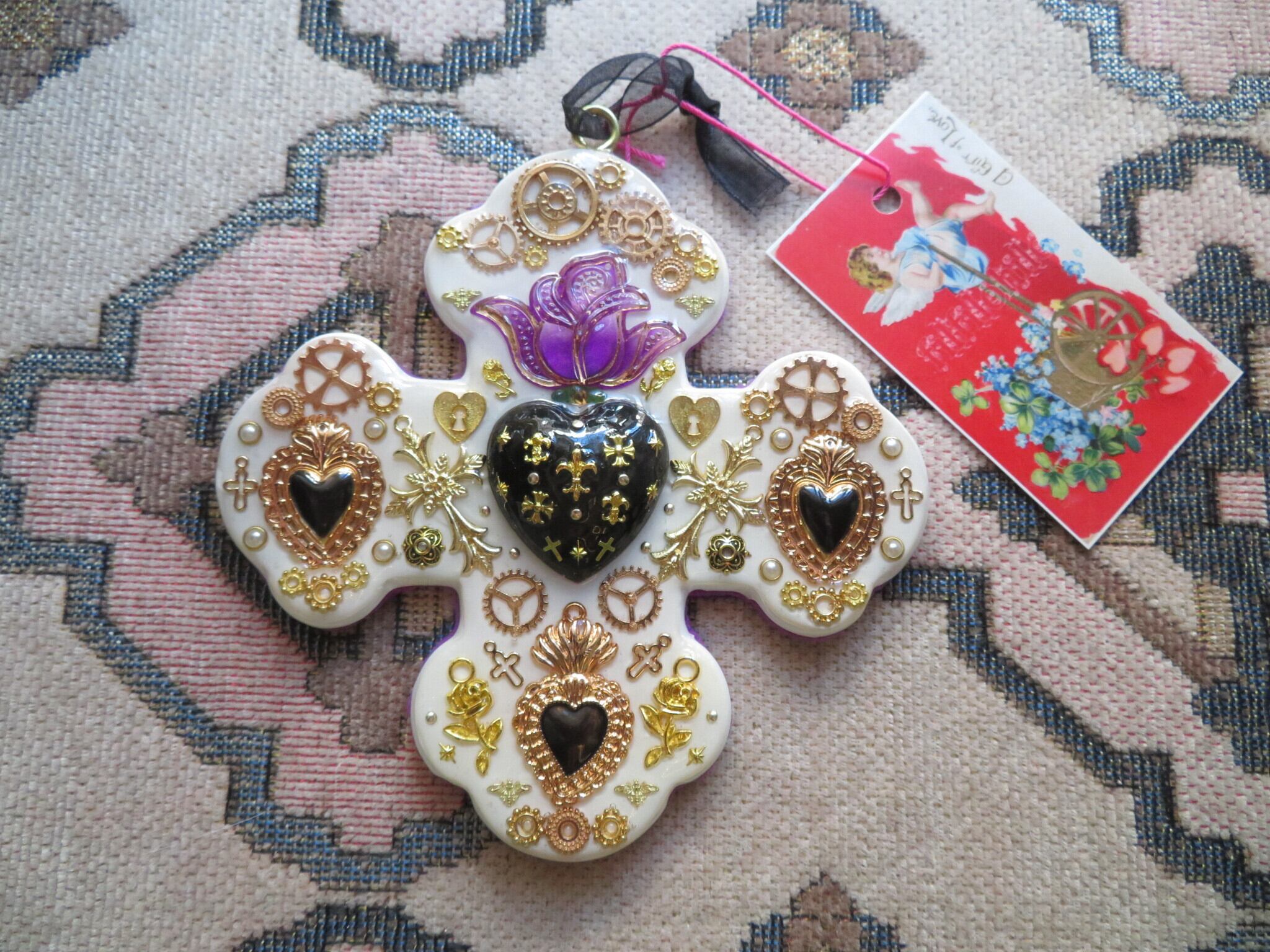 今回初登場の特大の壁掛けです。皆様の壁掛けのリクエストから制作させていただきました。もともとメキシコのミラグロという壁掛けから影響を受けてネックレスにデザインを落とし込んでいたので、私が壁掛けを作るのは何か違うのでは…と思っていて作ってこなかったのですが、私の感性のままに元のものとは違うテイストになるように作っています。