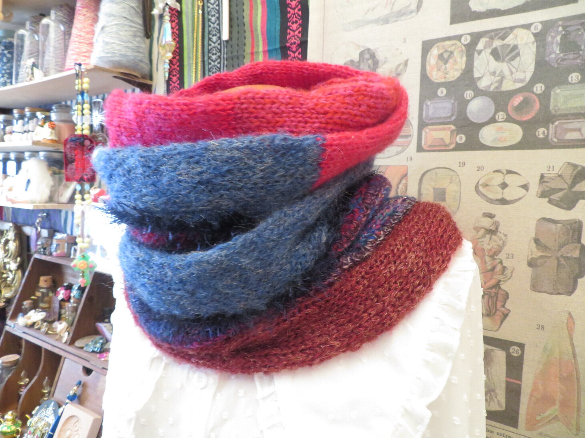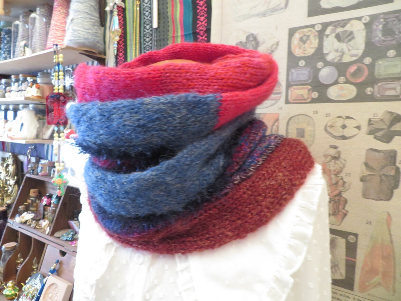 こちらは昨シーズンの惑星座様に制作したオリジナルのスヌードになります。店内を彩ってくれていたので少しお値段を下げての販売になります。