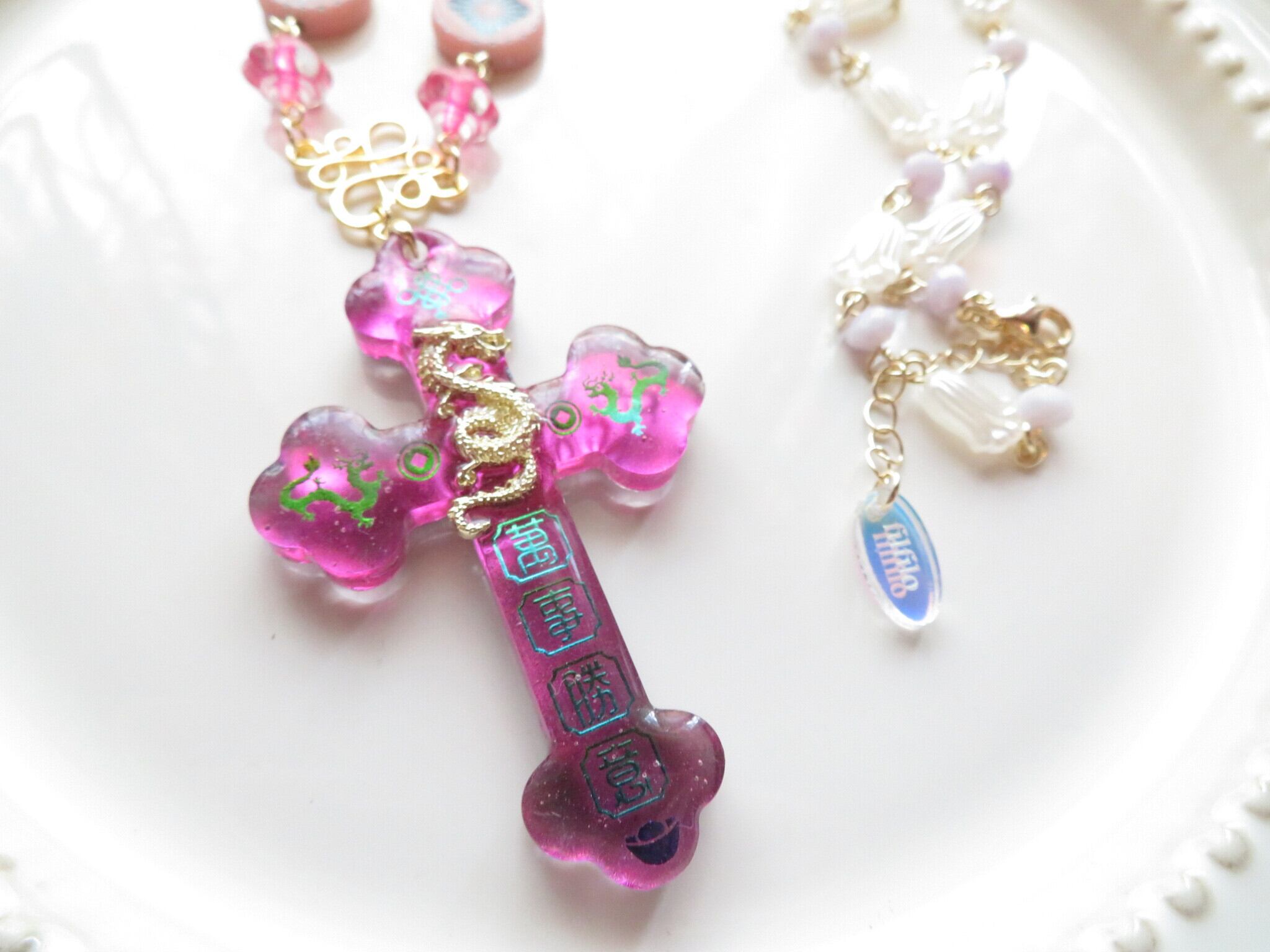 以前にだしていましたメタリックな中華シリーズからチェーンをそれぞれに合わせたスペシャルバージョンを作ってみました。※こちらの十字架の型では今後再販はありません。
