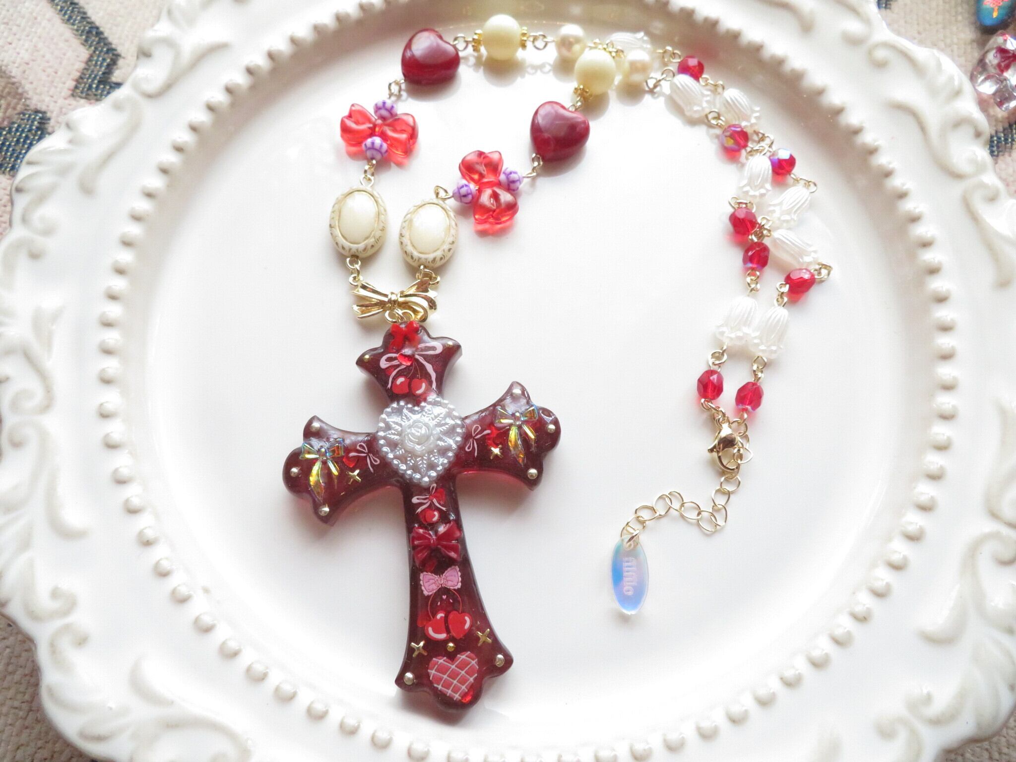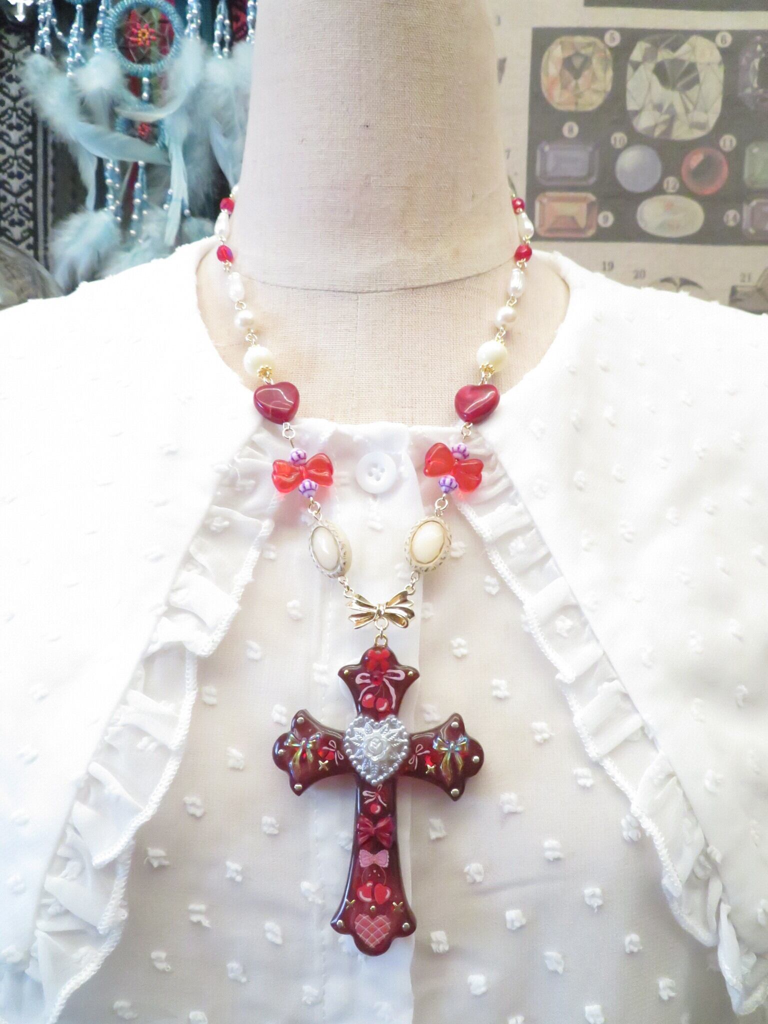 装飾十字架ネックレス ハート