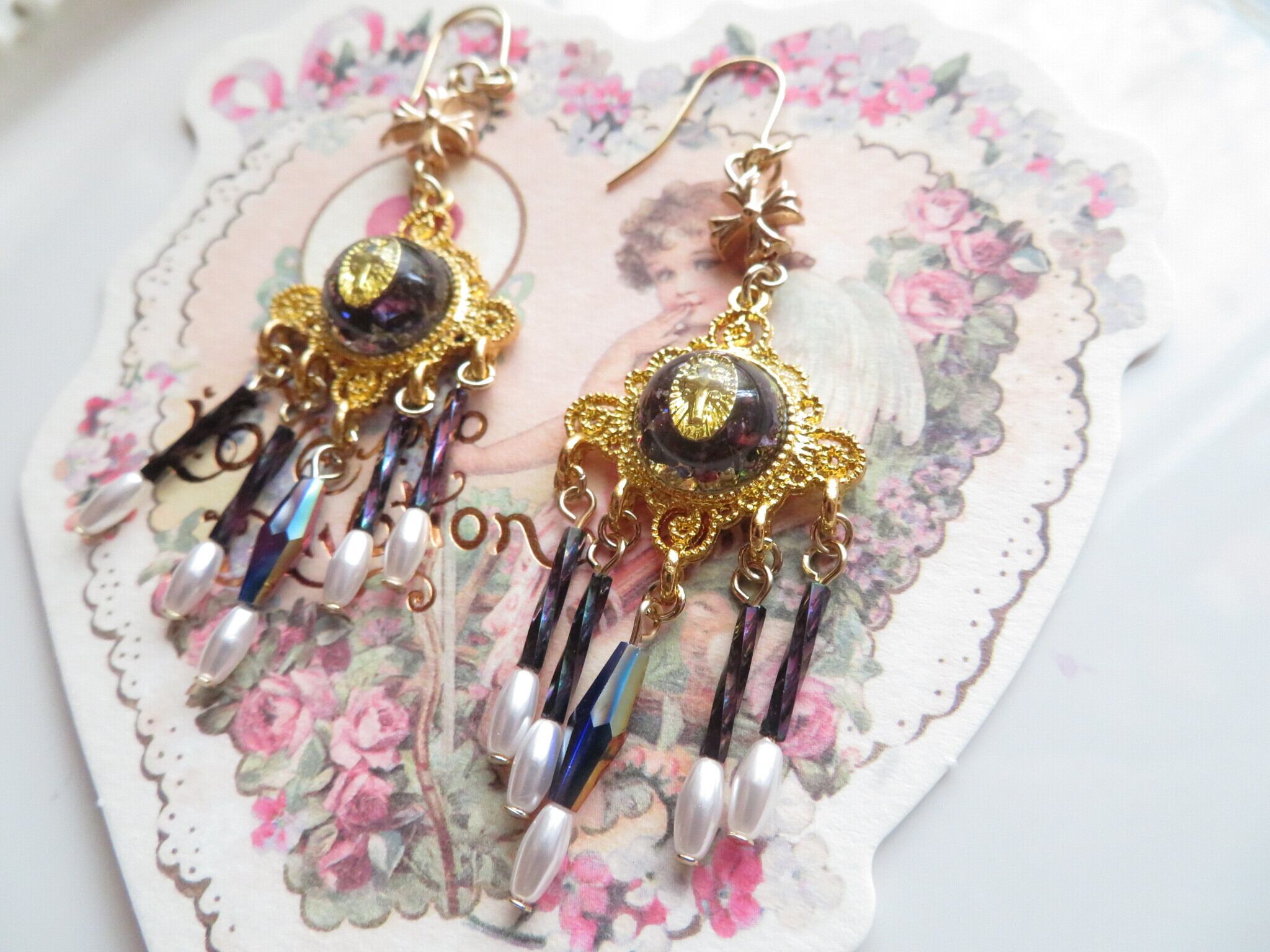 初登場です。一つ一つ手ずくりして合わせたオリジナルカボションを使ったビーズがシャランと揺れるピアスです。